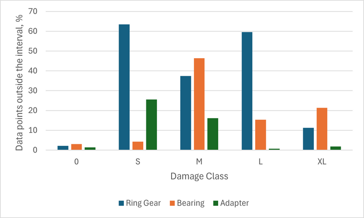 A planetary gearbox (WITTENSTEIN) was instrumented with three vibration sensors and four temperature sensors. Synthetic pittings of four different sizes were created using CNC milling based on reverse-engineered gear geometries. To ensure consistent oil viscosity during tests, preliminary trials were conducted to control the gearbox temperature between 30 °C and 35 °C. The gearbox was then tested at 25 combinations of speed and torque for each damage size. A sparse autoencoder was trained on undamaged data and used to detect anomalies in subsequent measurements. The detection performance was compared across sensor positions and defect sizes.